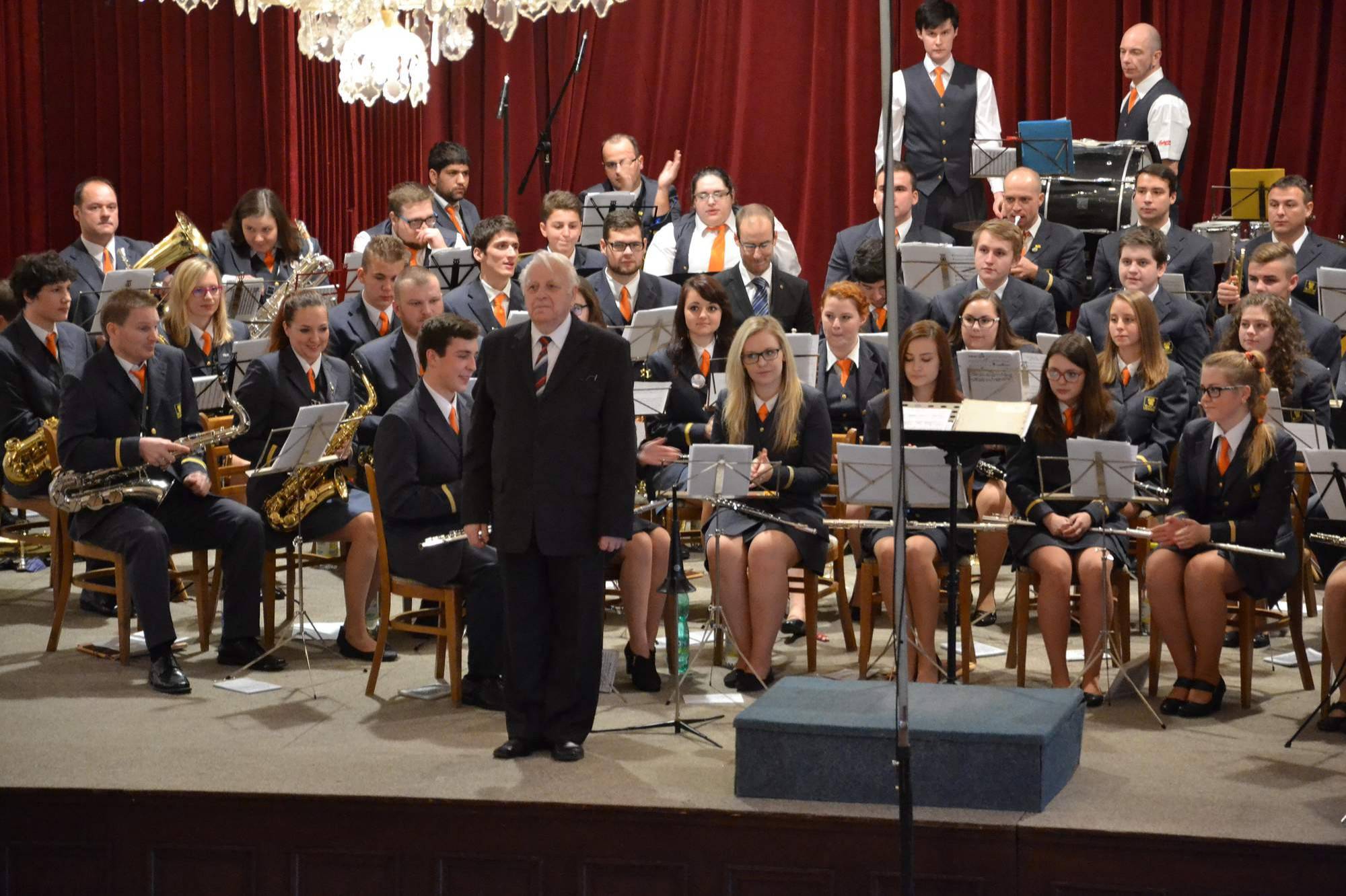 KONCERT PRO JUBILANTAV sobotu 21. listopadu 2015 se ve 14.30 hodin uskutečnil v Kongresovém sále PLL a.s. Jeseník koncert Dechového orchestru mladých ZUŠ Jeseník s podtitulem „Vše nejlepší, pane Vraňovský!“ Před zcela zaplněným sálem zazněly v podání jesenického orchestru skladby nestorů české koncertní dechové hudby, u jejichž řízení se za dirigentským pultem vystřídali Milan Domes, Tomáš Uhlíř i Vladimír Vraňovský. Nechyběly ani mažoretky SZUŠ taneční s.r.o. Jeseník pod vedením Zuzany Fritscherové a skvělý moderátor Jan Štelcl. V průběhu koncertu popřáli jubilantovi k jeho 80-tým narozeninám představitelé Města Jeseník – starosta Ing. Adam Kalous, místostarostka Mgr. Bc. Zdeňka Blišťanová, dále ekonomická ředitelka PLL Bc. Jitka Matušková, bývalá ředitelka ZUŠ Zdeňka Kainarová, současné vedení orchestru, předseda SPU Mgr. Jiří Bartoň, František Surmík a další gratulanti z řad bývalých či současných členů orchestru, kolegů i posluchačů. Koncert pro jubilanta se uskutečnil za finančního přispění Města Jeseník. Nezbývá, než ještě jednou popřát „VŠE NEJLEPŠÍ, PANE VRAŇOVSKÝ!“ | |