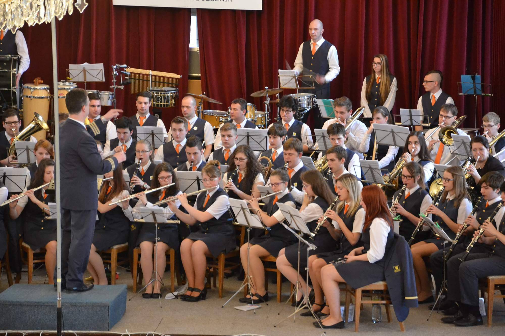 JARNÍ KONCERT S JUBILANTEMV sobotu 30.3.2019 ve 14.30 hodin se v Kongresovém sále PLL a.s. Jeseník uskutečnil tradiční jarní koncert Dechového orchestru mladých ZUŠ Jeseník. Za dirigentským pultem se představili: hudební skladatel a jazzman Mojmír Bártek, zakladatel orchestru a přes 30 let jeho umělecký vedoucí Vladimír Vraňovský, polský dirigent Andrzej Weinkopf a samozřejmě současní dirigenti orchestru Milan Domes a Tomáš Uhlíř. V programu koncertu zazněly skladby soudobých autorů symfonické dechové hudby, ale i rovněž skladby z oblasti hudby populární, muzikálové melodie apod. Slovem provázel Jan Štelcl, s orchestrem si zazpívaly i Andrea Rischka /vynikající polská zpěvačka/ a jubilant František Surmík. Tomu také v průběhu koncertu byly předány dary od přítomných gratulantů. V jeho podání zazněla například Cikánka či Lady Carneval, po které následovalo standing ovation. Františkovi přejeme ještě jednou vše nejlepší a děkujeme všem našim podporovatelům a posluchačům za účast a potlesk. | |